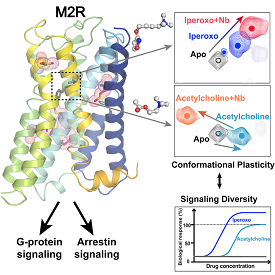 2019年5月15日,Molecular Cell期刊在线发表了题为Conformational Complexity and Dynamics in a Muscarinic Receptor Revealed by NMR Spectroscopy的研究论文,报道了应用液体核磁共振方法研究M2毒蕈碱型乙酰胆碱受体结构动态性的工作,并结合功能实验和分子动力学模拟,揭示了GPCR 信号转导多样性的分子机制。该项研究由北京大学化学学院金长文教授课题组与清华大学、美国斯坦福大学和德国埃尔朗根-纽伦堡大学的合作者共同完成。