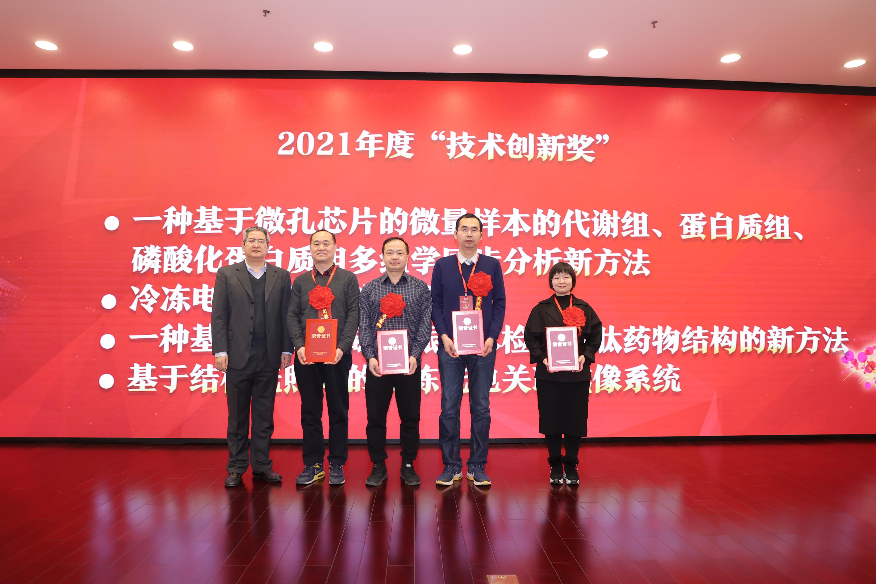 国家蛋白质科学中心一直注重创新技术的发展,会上凤凰中心科技委主任王志新院士宣读了表彰优秀技术平台、技术创新奖和优秀技术人才的奖励通令。我中心李红卫博士(上图右2)的“一种基于高场核磁共振技术检测多肽药物结构的新方法”由北京大学分设施推荐荣获“技术创新奖”,我中心牛晓刚博士(下图右3)荣获“优秀技术人才”。